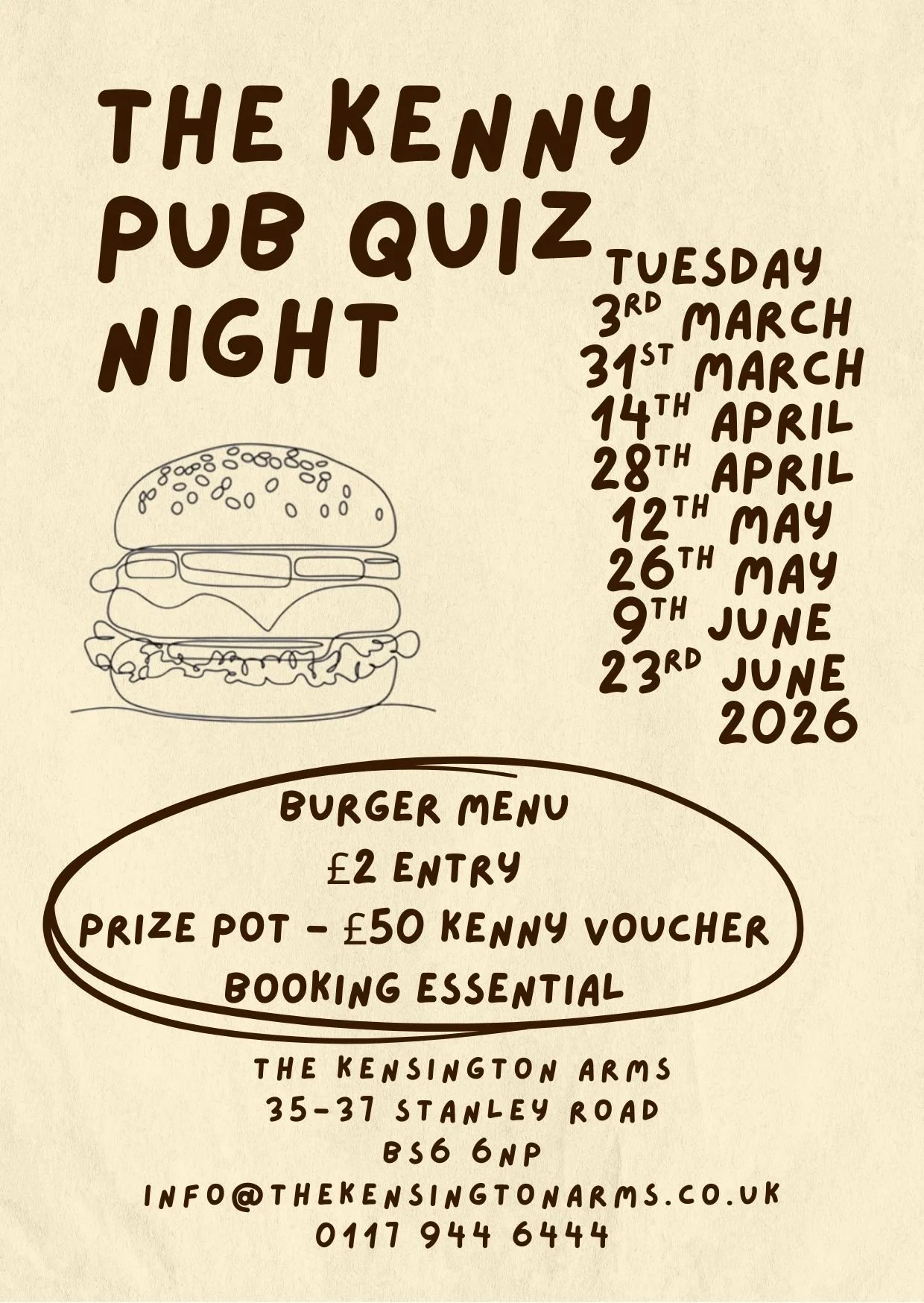 Entry is £2pp and you are in with the chance of winning a £50 Kenny Voucher!